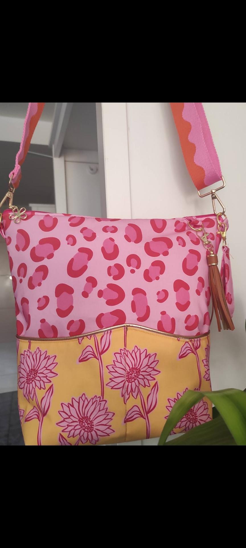 Bolso realizado a mano con telas de algodón premium de 153 gr .