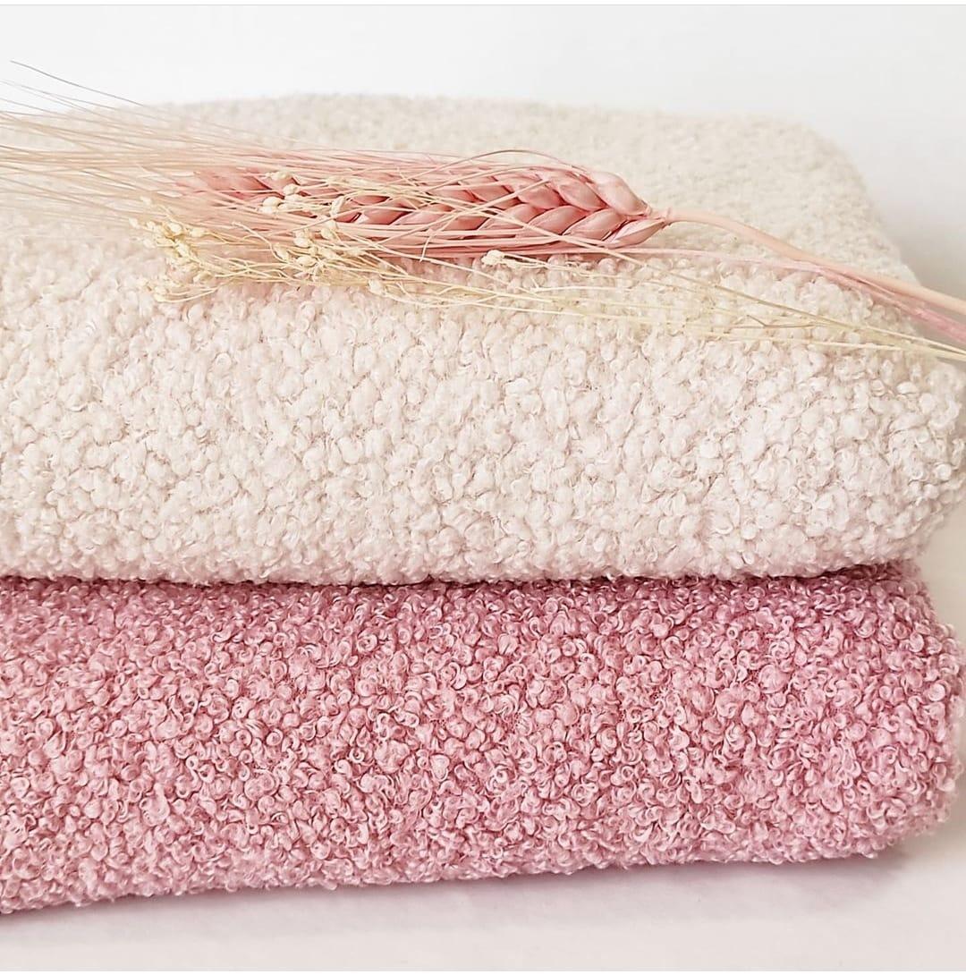 Tejido bouclé en color rosa maquillaje .