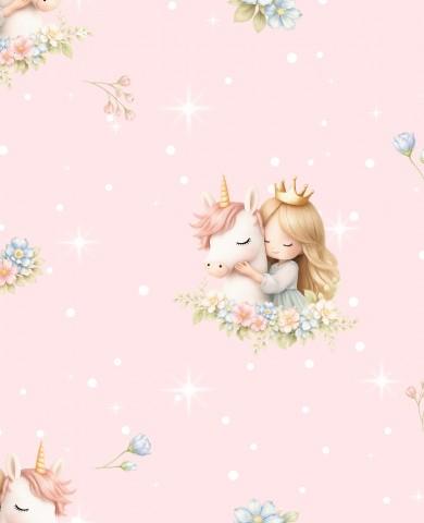 PRINCESA Y UNICORNIO ROSA Y ESTRELLAS ( EN 10 TEJIDOS DISTINTOS )