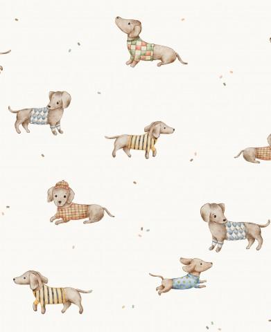 PERROS SALCHICHA PEQUEÑOS CAMISETA FONDO BLANCO ROTO ( EN 10 TEJIDOS DISTINTOS )