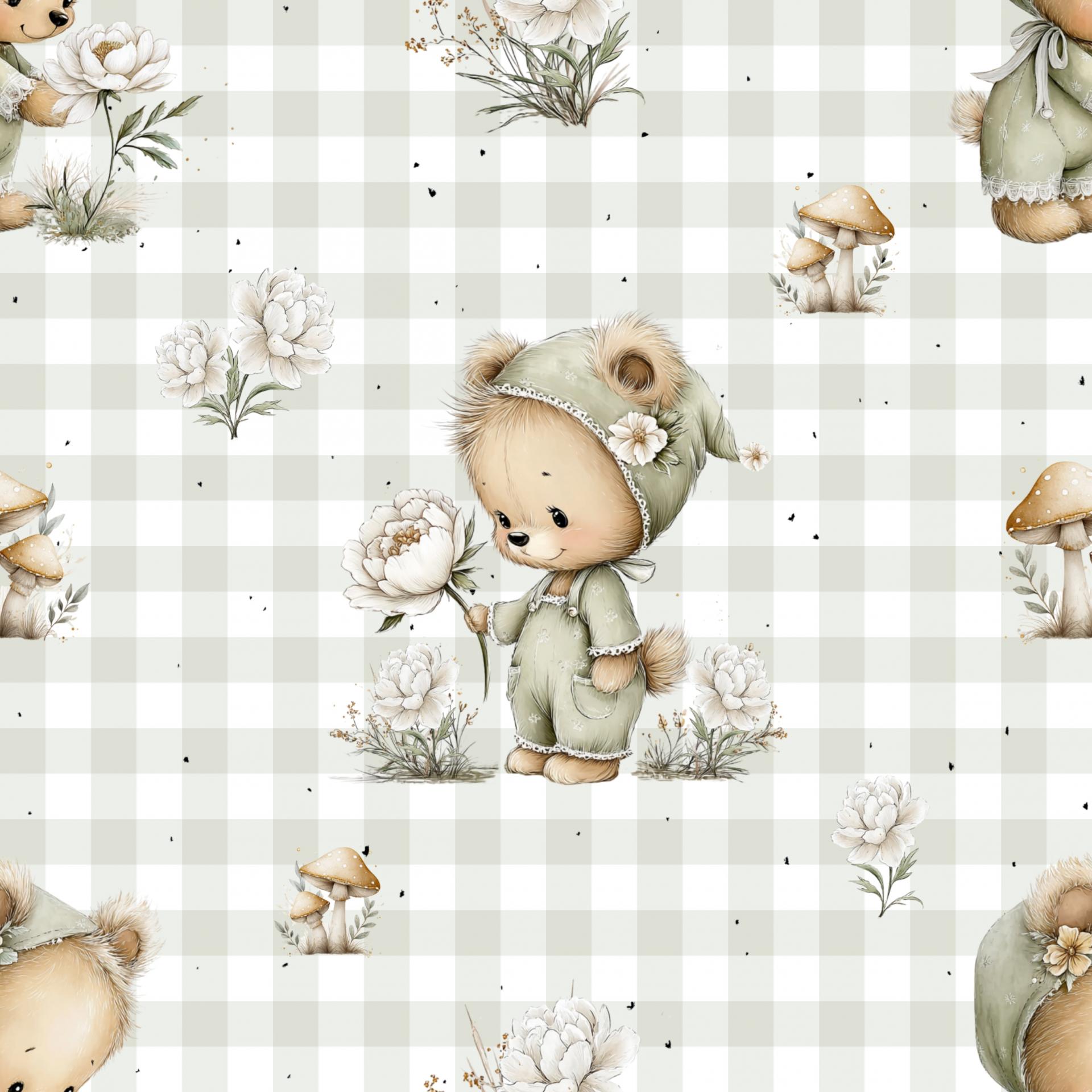 OSITO CON FLOR VICHY VERDE ( EN 10 TEJIDOS DISTINTOS ) DISEÑO EXCLUSIVO